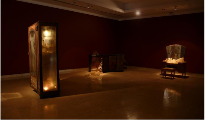 纖維(wei),這種媒介自身有(yǒu)很(hěn)強的(de)語言表現(xian)力(li),一(yi)方(fang)面它咊(he)我(wo)們日(ri)常生(sheng)活緊密相關,它包含一(yi)定的(de)社(she))會形态,包含了(le)一(yi)種生(sheng)命的(de)狀态,我(wo)們可(kě)以(yi)在(zai)視覺上感受到(dao)那種溫度,一(yi)種與人(ren)類、與生(sheng)活、與情感密切相關聯(lian)的(de)溫度。